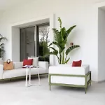 Rummen har matplats och uteplats samt skrivbord för gästernas bekvämlighet. En bidé, en separat toalett och en dusch tillsammans med kylskåp, spishäll och köksredskap finns i rummen.